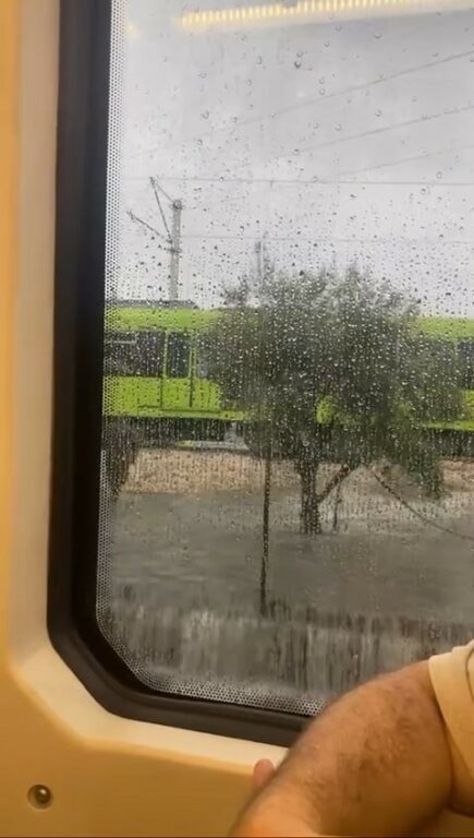 Bursa’da sağanak yağış sebebiyle bir çok noktada hayat olumsuz etkilenirken, metro seferleri de aksadı. BURULAŞ, Acemler-Ataevler arasındaki seferlerin geçici süreliğine kapatıldığını duyurdu. Metronun içini de su bastı. Raylardan akan sular ise şelaleyi andırdı