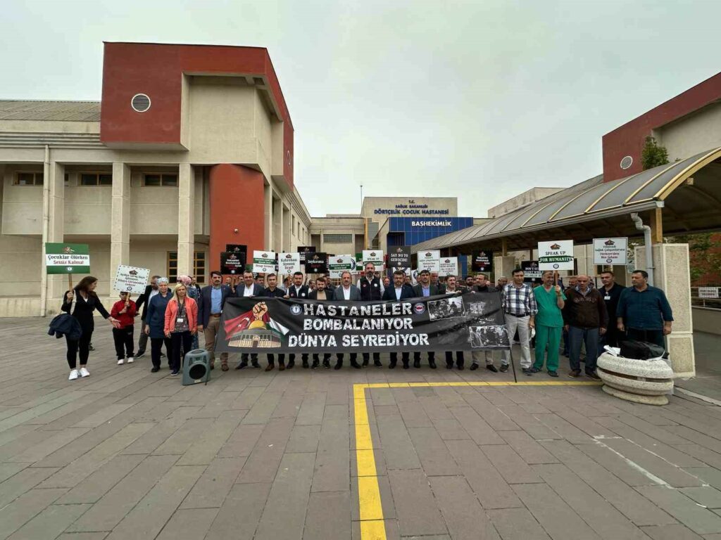 İsrail’in Gazze’ye insanlık dışı saldırıları tüm hızıyla devam ederken, tepkiler de çığ gibi büyüyor. Sağlık-Sen üyeleri de 81 ilde İsrail’in zulmüne karşı basın açıklaması gerçekleştirdi. Bursa’da Dörtçelik Çocuk Hastanesi önünde toplanan Sağlık-Sen Bursa Şubesi, İsrail’in saldırılarını kınarken, Filistin’e destek çağrısı yaptı. Gerçekleştirilen basın açıklamasına Memur-Sen’e bağlı sendikaların başkanları ve yönetim kurulları ile çok sayıda sağlık çalışanı katıldı.
