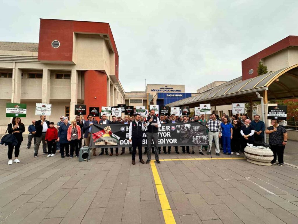 Şu ana kadar Gazze’ye atılan bombaların 12 bin ton olduğunu vurgulayan Yünkül, “Yazıklar olsun bu vahşeti görmeyenlere. Yazıklar olsun hastanelerin bombalanmasına göz yumanlara. Yazıklar olsun riyakarlık yaparak İsrail’e arka çıkanlara. Gazze’de hastane yok, ilaç yok, doktor yok. Yoğun bakımdaki bebekler çaresiz. Ölüme mahkûm edilmiş durumda. İnsan sağlığına hizmet eden kurumlara, hastanelere saldırı yapılması insanlık dışıdır, insanlık suçudur. Savaşlar dahil her dönemde hastaneler, saldırılmayan, en korunaklı alanlar olarak kabul görmüştür. Ancak bugün, katil İsrail, hastaneleri gözünü kırpmadan vurmaktadır. Katil İsrail’in hastaneye yaptığı hava saldırısında bebekler, çocuklar, kadınlar, yaşlılar, sağlık çalışanları hayatını kaybetmiştir. Bu saldırı, insanlık adına utanç vericidir. İnsanı yaşatmak için çaba gösteren sağlık çalışanının canına kast etmek insanlığı öldürmektir, vicdanlara savaş açmaktır. İnsan sağlığına hizmet eden kurumların hangi şartlarda, hangi gerekçe ile olursa olsun saldırıya maruz kalması kabul edilemez” ifadelerini kullandı.