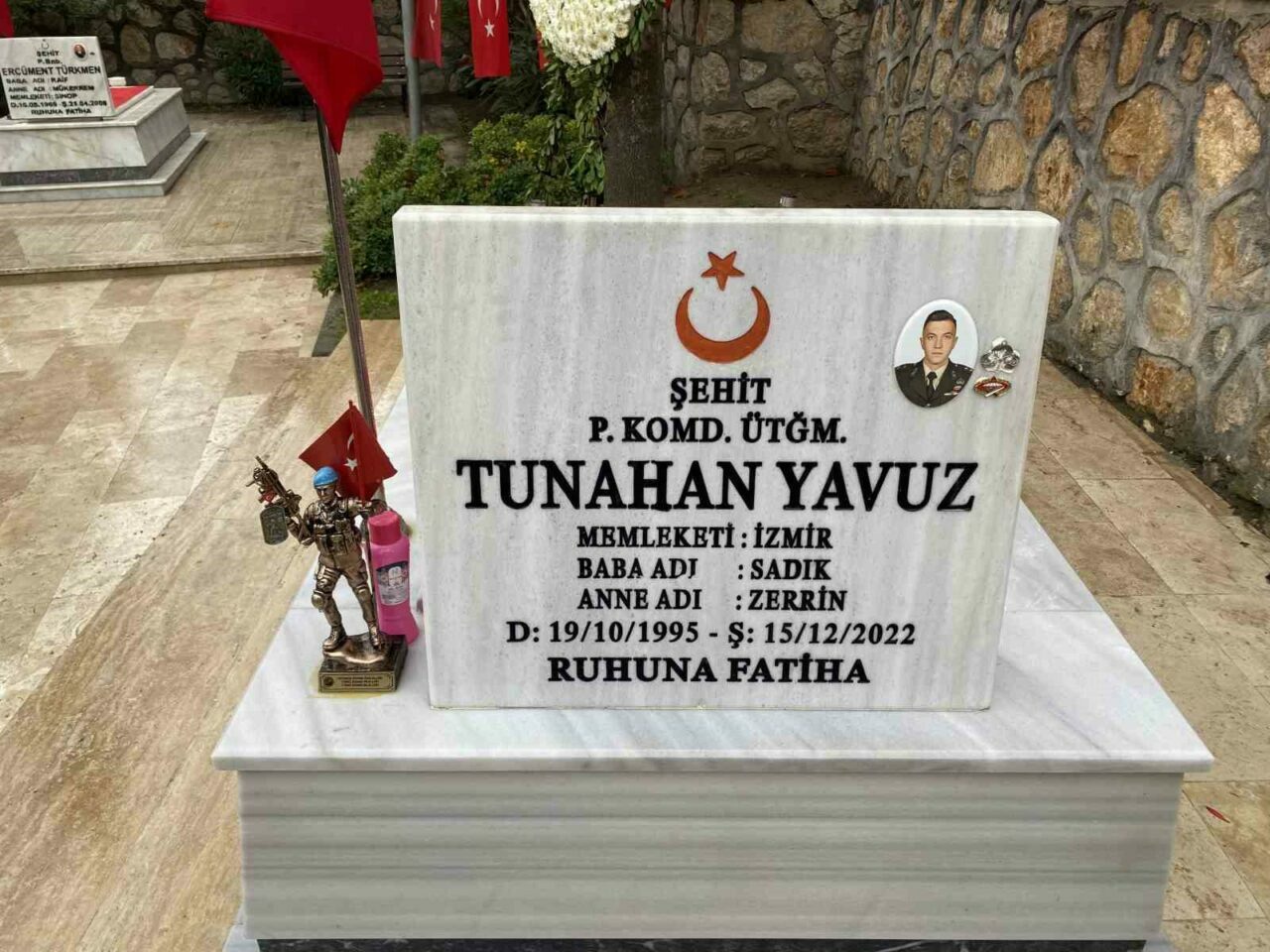Olay, şehit ailesinin akşam saatlerinde mezarlığı ziyareti sırasında ortaya çıktı. Şehidin kabrine gelen aile, silah arkadaşları tarafından Kayseri’de özel olarak yaptırılan komando heykelinin yerinde olmadığını fark etti.
