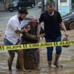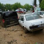 Bursa’da sağanak yağış sebebiyle birçok evi su basarken, taşan dereler sokaklarda park halinde bulunan araçları önüne kattı. Uludağ’ın eteklerindeki Yıldırım ilçesi Teferrüç Mahallesi’nde bulunan Karınca Deresi’nden kopan taş parçaları sokağı yürünmez hale getirdi. Dereden taşan sulara dayanamayan otomobiller üst üste geldi. Kullanılmaz hale gelen otomobillerini gören vatandaşlar, yaşananları hayretler içerisinde izledi. Derenin getirdiği sel sonrası yolda yürüyen yaşlı bir kadın dengesini kaybedip yere düştü. Çevredeki vatandaşların çabalarıyla kurtarılan kadın, yürümekte zorlandığı için terliklerini bırakıp yalın ayak yoluna devam etti.