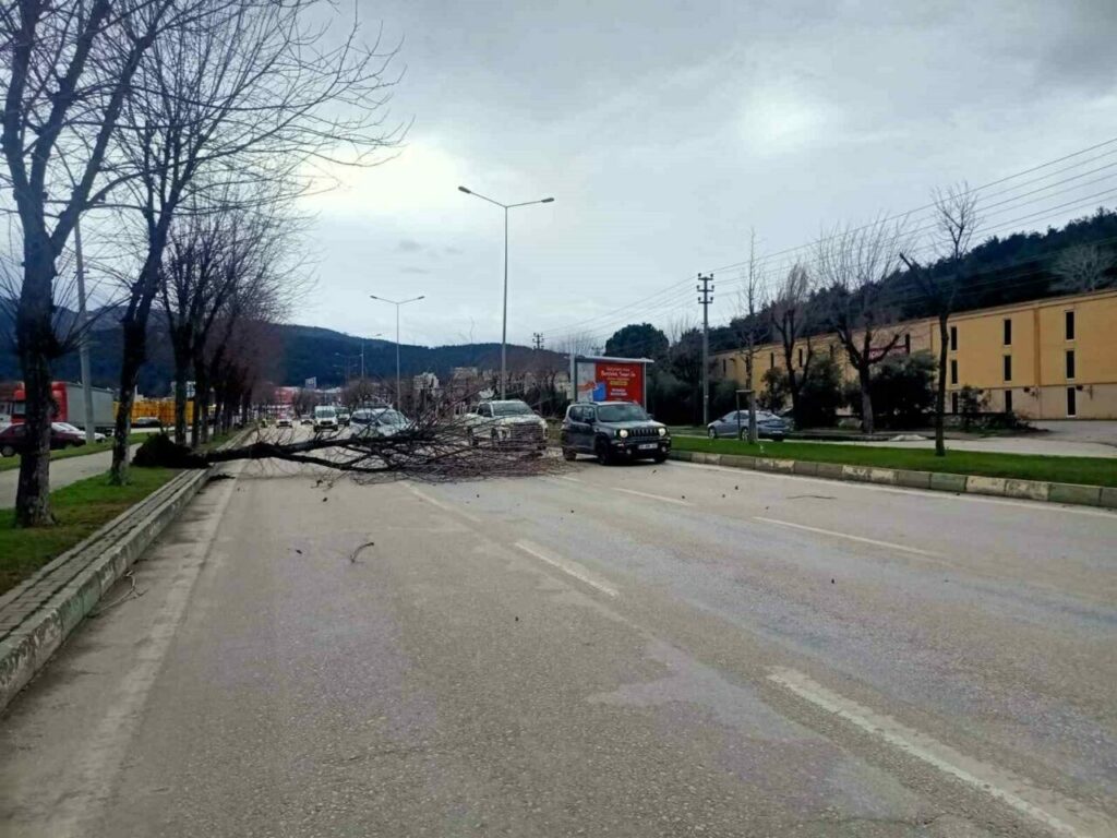 Öte yandan, Orhaneli Yolu üzerinde de yola devrilen ağaç nedeniyle trafik polisleri yolu tek şeride indirdi. Polis bölgede güvenlik önlemi alırken, yetkililer mecbur olmadıkça dışarı çıkılması konusunda uyarıda bulundu.