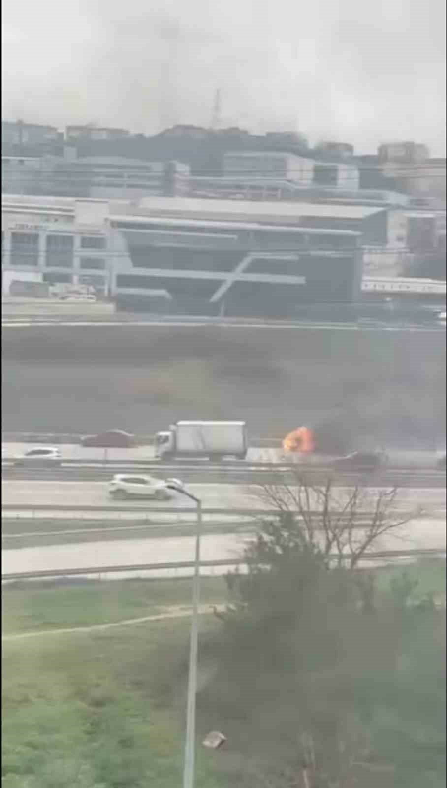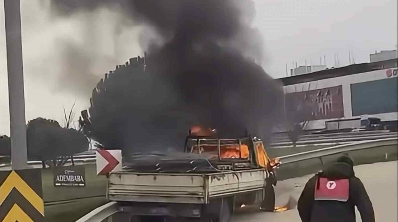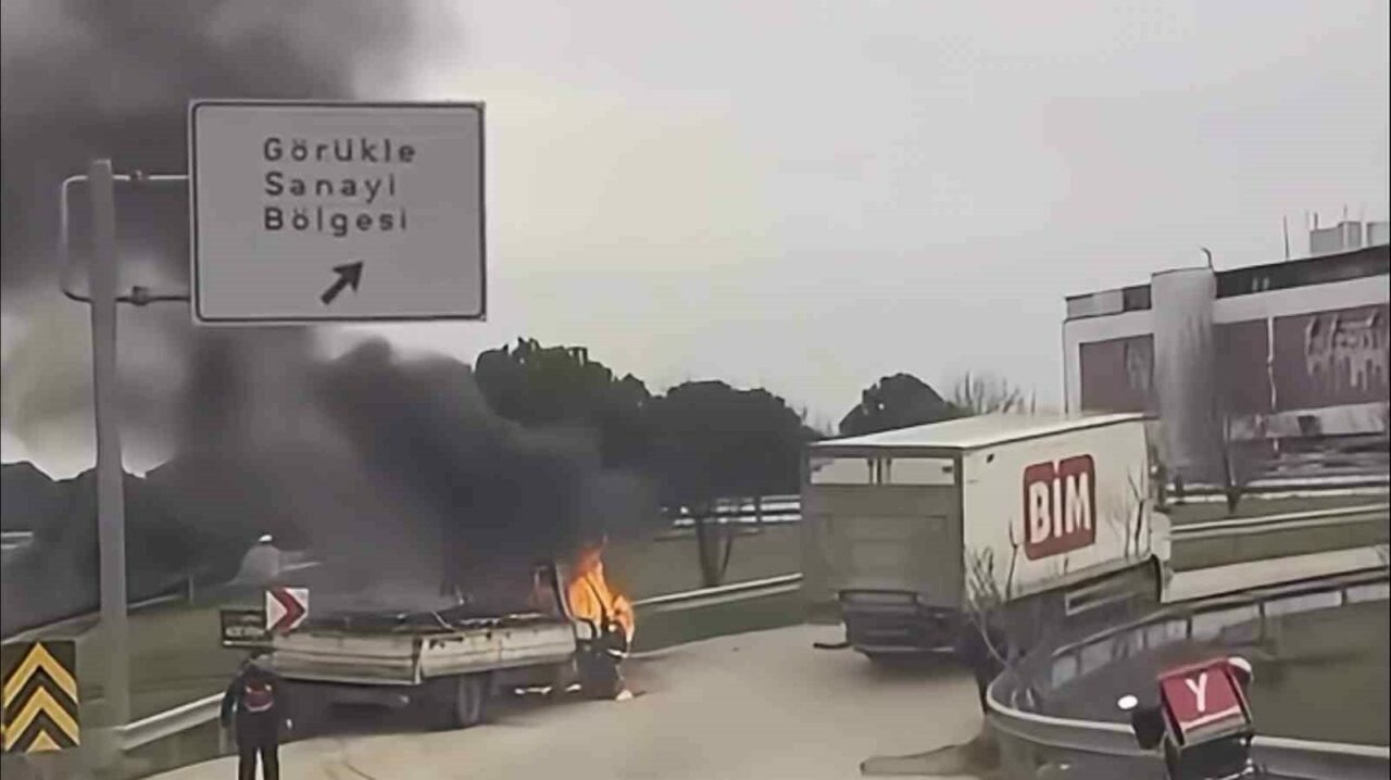Bursa’da İzmir Yolu üzerinde Görükle dönüş kavşağında seyir halindeki bir kamyonette yangın çıktı.