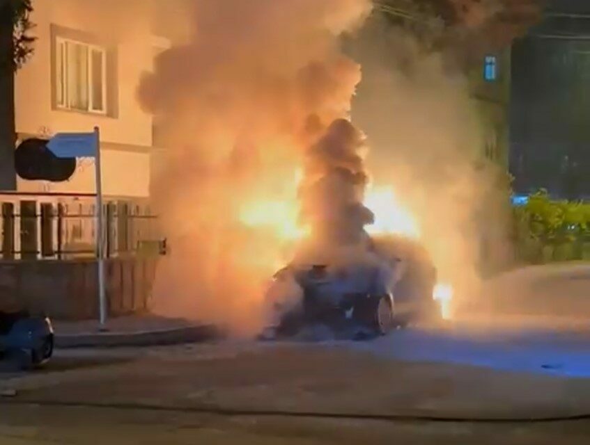 Edinilen bilgiye göre, seyir halindeyken bir anda dumanlar yükselmeye başlayan elektrikli otomobil kısa sürede alevlere teslim oldu. Çevrede paniğe neden olan yangını gören vatandaşlar, durumu 112 Acil Çağrı Merkezi’ne bildirdi. İhbar üzerine olay yerine gelen itfaiye ekipleri, alevleri kontrol altına alarak söndürdü. Yangında can kaybı ya da yaralanma yaşanmazken, otomobilde maddi hasar meydana geldi.