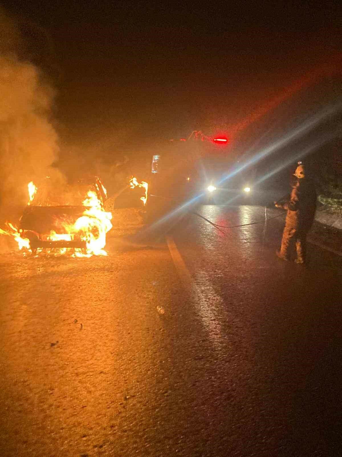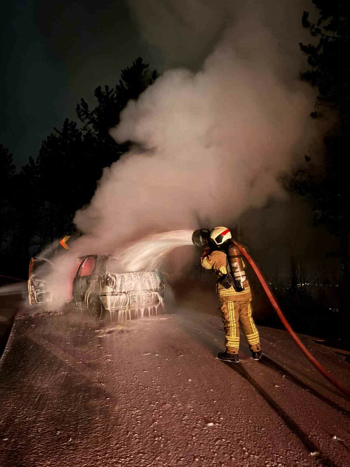 Bursa’da seyir halindeki otomobil alev alev yandı