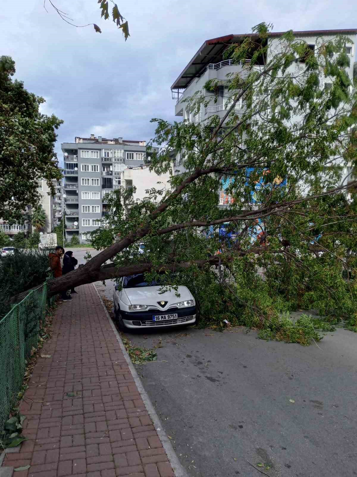 Bursa’da şiddetli rüzgar kent merkezinde hayatı olumsuz etkiledi. Rüzgarın etkisiyle vatandaşlar yürümekte zorluk çekerken, bazı ağaçlar ise araçların üzerine devrildi.