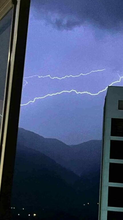 Bursa’da gece karanlığı, ardı arkası kesilmeyen şimşeklerle aydınlandı.
