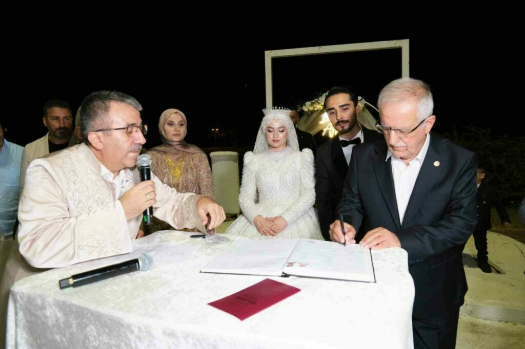 Nikâh töreninde konuşan Milletvekili Aydın ve İl Başkanı Gürkan, genç çifte mutluluklar dilerken düğündeki yoğun katılıma dikkat çekti. Nikâh cüzdanı ise genç çifte İl Başkanı Davut Gürkan tarafından verildi.