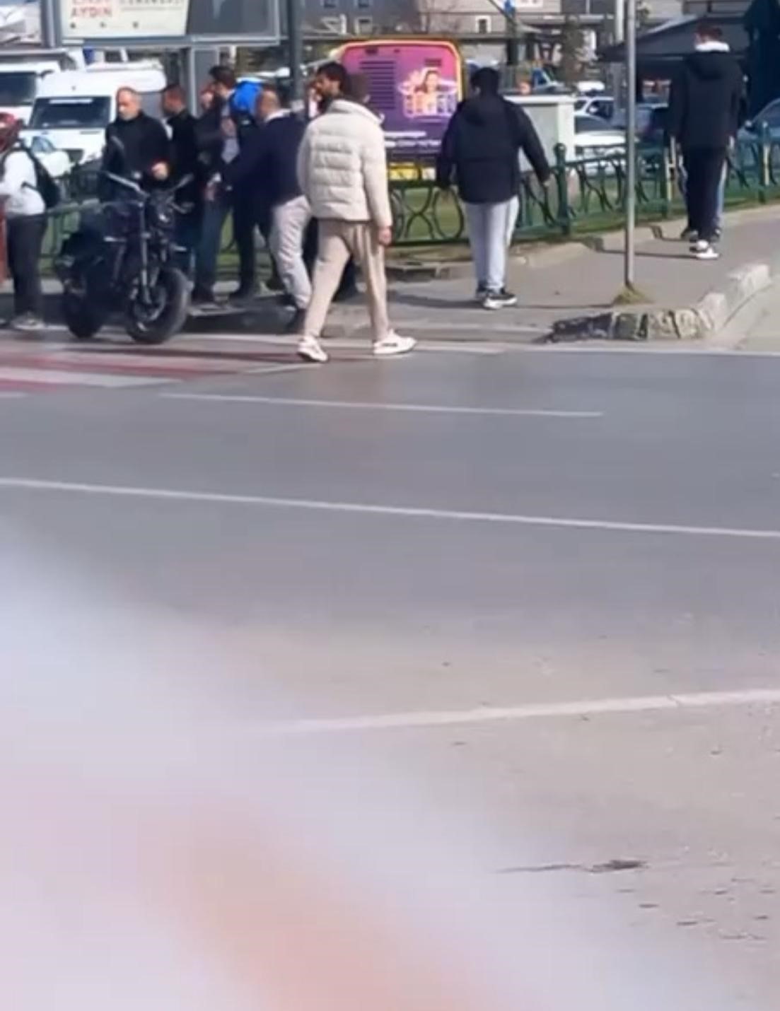 Motosikletten inen sürücü aracın ön camına arka arkaya vurup kırmak isteyince araç sahibi de aşağı inip kavgaya tutuştu.