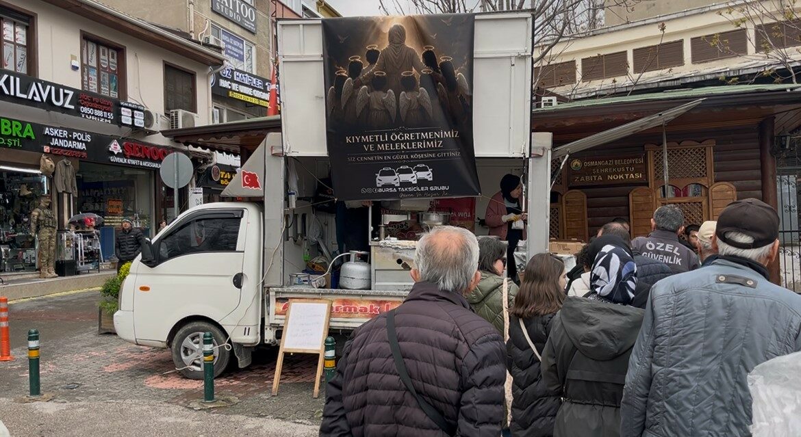 Bursa Taksiciler Grubu, Kahramanmaraş’ta düzenlenen okul saldırısında hayatını kaybeden matematik öğretmeni Ayla Kara ve 8 öğrenci için Şehreküstü Meydanı’nda lokma hayrı gerçekleştirdi.