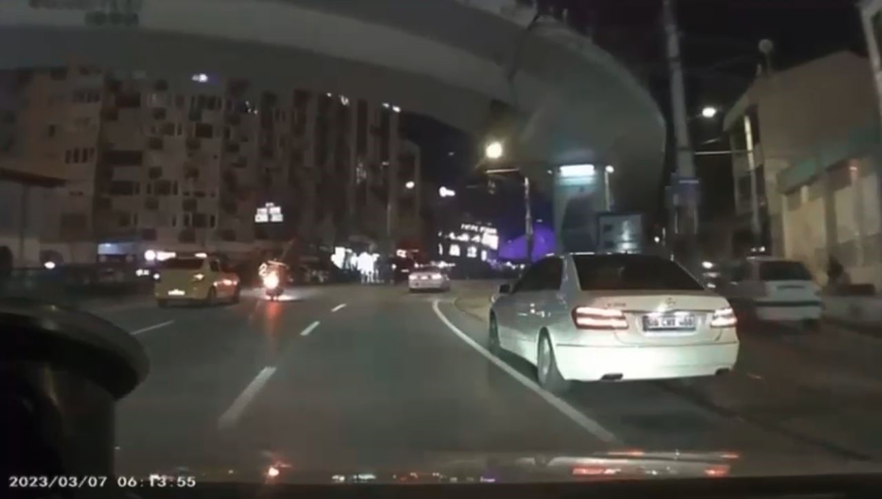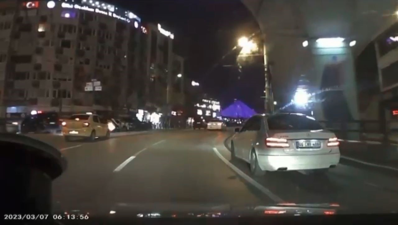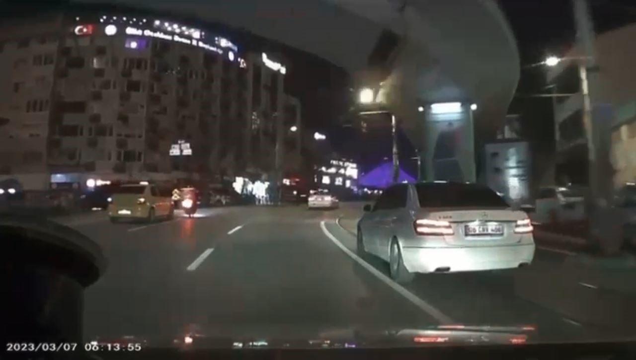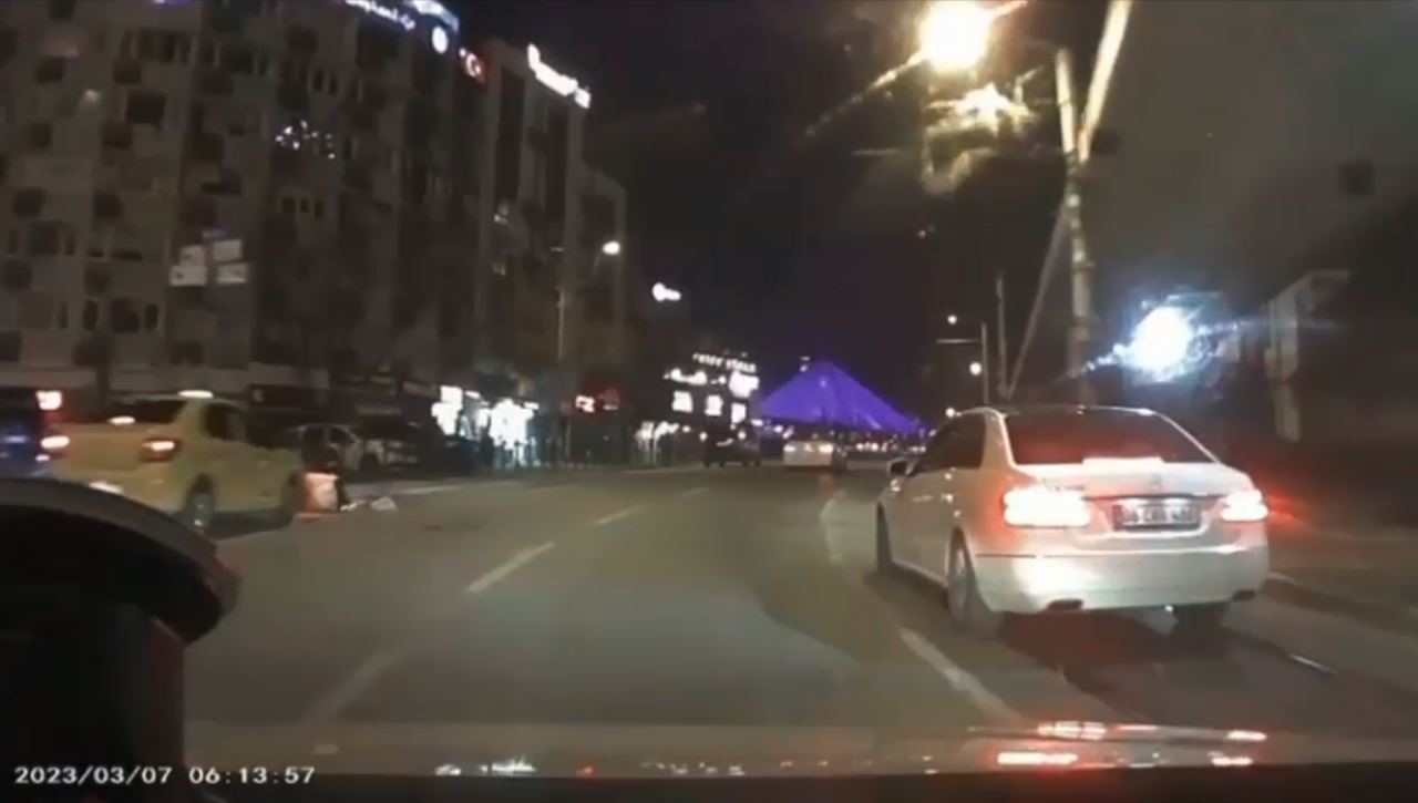 Heykel istikametine ilerleyen taksi sürücüsü, siparişe giden motosikletli kuryenin dönüş alacağını kestiremeyince gaza bastı. Bu esnada dönüş yapmak için sola dönen motosiklet sürücüsü, otomobilin kendisine çarpmasıyla savruldu. Yere düşen motosiklet sürücüsünü fark eden otomobil sürücüsü hemen frene bastı. Aracın altına kalmaktan son anda kurtulan kuryenin yardımına çevredekiler koşarken, yürekleri ağza getiren görüntüler kameraya anbean yansıdı.