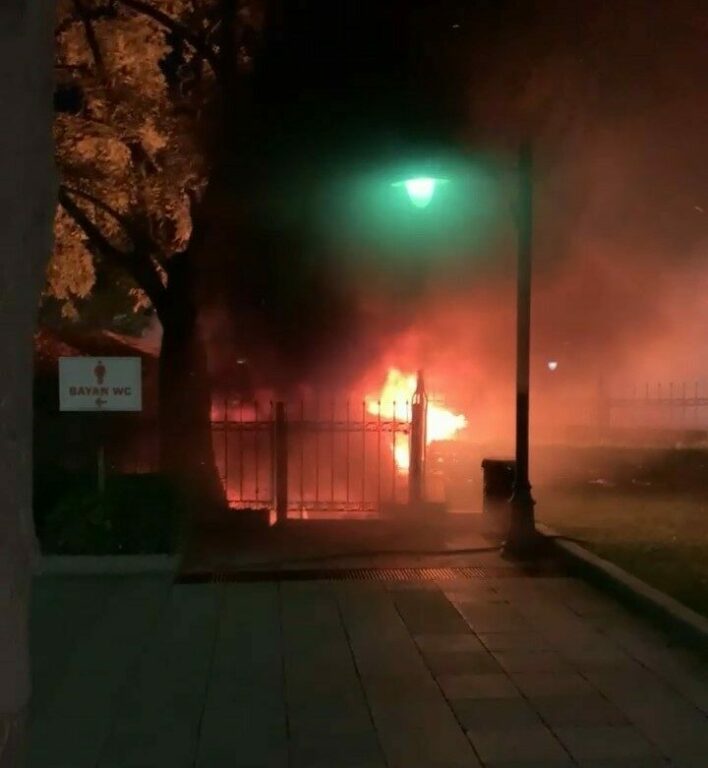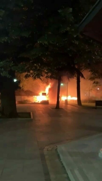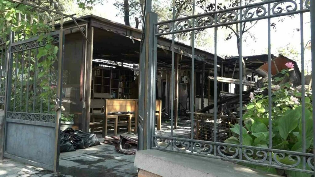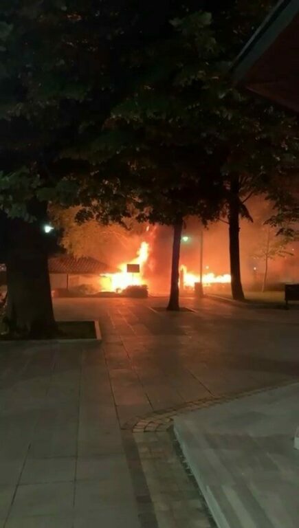 Bursa’da tarihi Çekirge Semti’nde 1.Murat Hüdavendigar Camisi’nin bahçesindeki çay bahçesi dün geceki yangında küle döndü. Alevler itfaiye ekipleri tarafından söndürülürken, sabah küle dönmüş malzemeler çalışanlar tarafından toplandı.