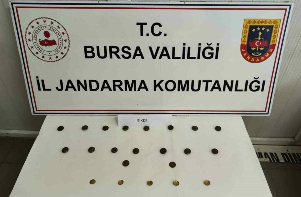 Bursa İl Jandarma Komutanlığı İstihbarat Şube Müdürlüğü ile İnegöl İlçe Jandarma Komutanlığı ekipleri, bir şahsın İstanbul’dan İnegöl’e tarihi eser satmak amacıyla geleceğini tespit etti. Ekipler, C.Ç. isimli şüpheliyi ilçe merkezinde yapılan operasyonla gözaltına aldı. Şüphelinin üzerinde yapılan aramada, Bizans ve Roma dönemlerine ait 17 adet bronz ve 5 adet altın sikke ele geçirildi. Ele geçirilen eserlerin yasa dışı yollardan 100 bin dolara satılmak istendiği öğrenildi.