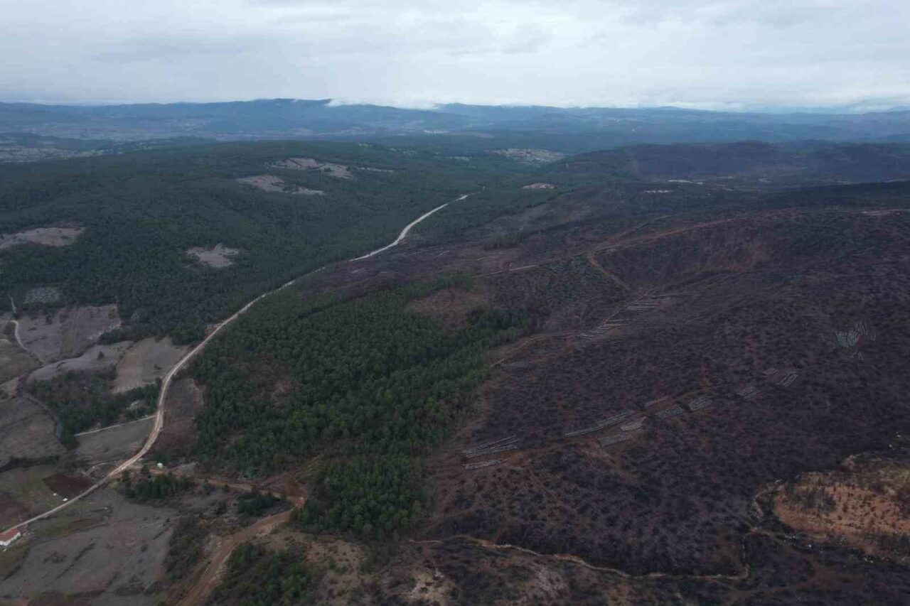 Bursa’da yakın tarihin en büyük orman yangınlarından birisi olan ve yaklaşık bir hafta süren Temmuz ayındaki Harmancık yangınında 6 bin futbol sahası büyüklüğünde 4 bin 240 hektar orman küle dönerken, burada yaralar kısa sürede sarıldı. Aralık 2025’te yanan alanların yeniden yeşillendirilmesi için tohum atma, teras oluşturma ve fidan dikim çalışmalarında devasa işler yapıldı. Harmancık’ta Bursa’dan İtalya’ya uzanacak mesafe kadar yani 2 bin 327 kilometre teras ilmek ilmek işlendi. 1 milyon 617 bin 921 fidan toprakla buluşturulurken, 17 bin kilogram tohum ekildi. Bölgedeki son durum ise İHA ekibi tarafından dron ile havadan görüntülendi.