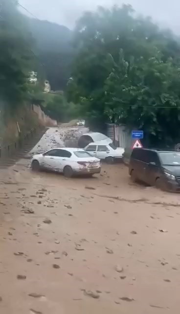 Bursa’da sağanak yağış sonrası Uludağ’ın eteklerindeki Karınca Deresi’nin taşması sebebiyle çok sayıda otomobil sel sularında sürüklendi. Taşan dere ve taş parçaları park halindeki otomobilleri önüne katıp sürükledi, o anlar bir vatandaş tarafından kayda alındı.