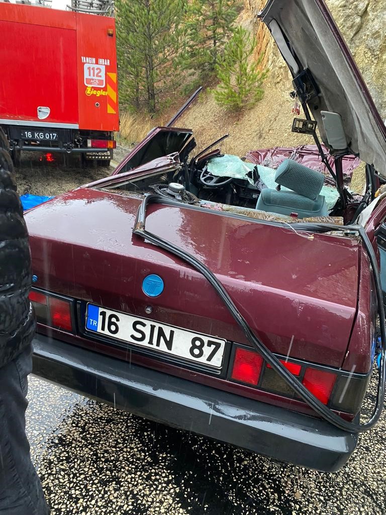 Kaza, Keles ilçesine bağlı Güneybudaklar mevkiinde meydana geldi. İddiaya göre, Baraklı’ya taziye için giden vatandaşları taşıyan otobüs, ters şeritten gelen otomobil ile çarpıştı. Yağışlı havanın etkisiyle meydana gelen kazada otobüs yan devrilirken, otomobil ikiye bölündü. İhbar üzerine bölgeye çok sayıda 112 Ekibi sevk edilirken, feci kazada otomobilde bulunan Abdullah Öz, (58) hayatını kaybetti, 5 kişi yaralandı.