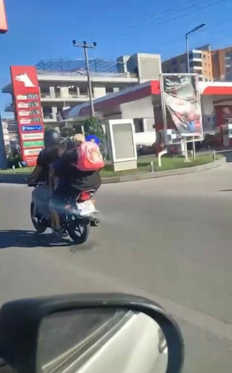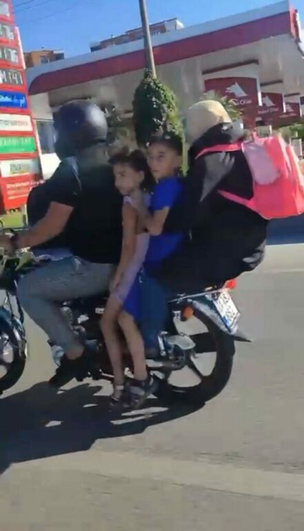 Öte yandan, Sanayi Caddesi üzerinde ise motosiklete 4 kişi binen aile, ölüme davetiye çıkardı. Motosiklet sürücüsünün tehlikeli anları başka sürücülerin cep telefonu kamerasına yansıdı.