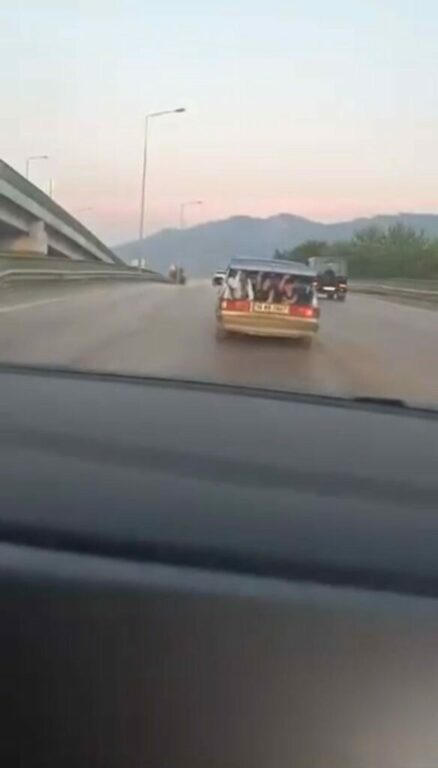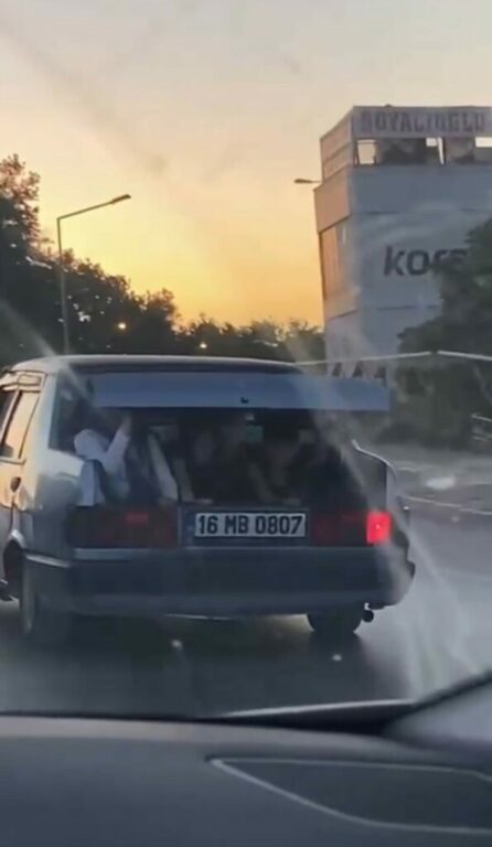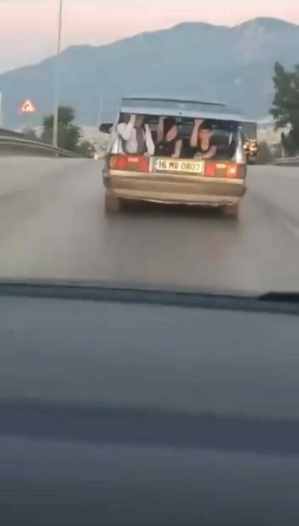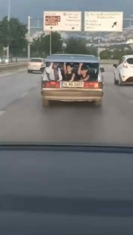 Merkez Osmangazi ilçesi 11 Eylül Bulvarı üzerinde seyir halinde olan 16 MB 0807 plakalı Tofaş Şahin marka otomobil sürücüsü, bagaja da 3 kişi alarak seyretmeye başladı. Tehlikeli anlar, saniye saniye amatör kameraya yansıdı.