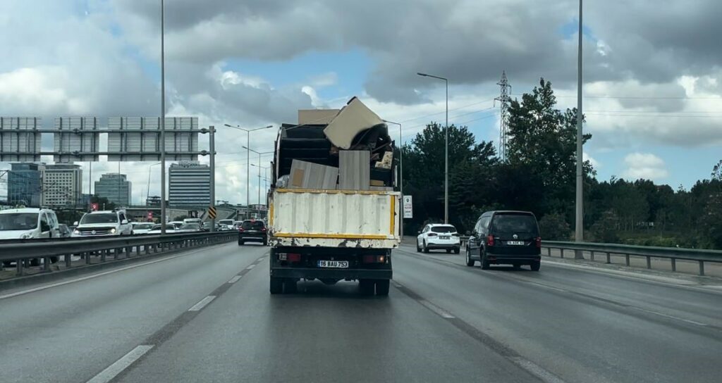 Bursa’da bir nakliye firması yaptığı taşımacılıkla görenleri hayrete düşürdü. Düzensiz ve aşırı yüklediği eşyalar ile şehir içinde trafiğe çıkan sürücü kimseyi düşünmeden kilometrelerce seyir etti. O anlar kameraya yansıdı.