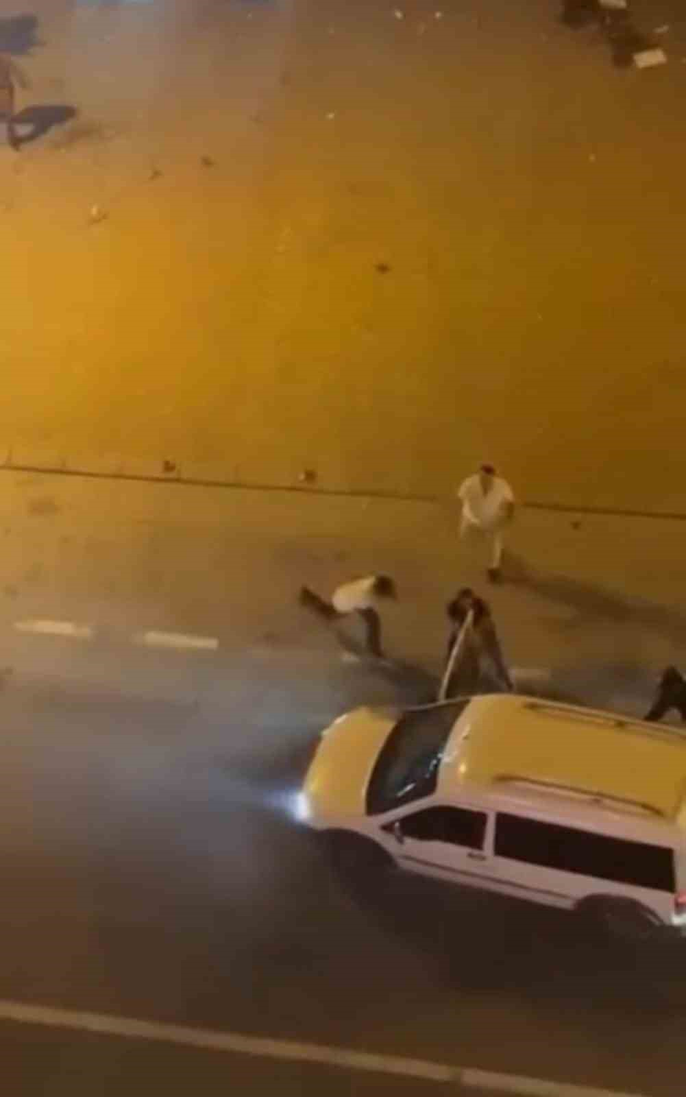 Bursa’da iddiaya göre araçta son ses müzik dinleyen gençler ile mahalle sakinleri arasında sözlü tartışma yerini kavgaya bıraktı. Tarafların birbirlerine tekme tokat girdiği, sopaların havada uçuştuğu kavga kameraya yansırken, araç sürücüsü genç önce kaçmaya ardından kavga ettiği kişileri araçla ezmeye kalktı.
