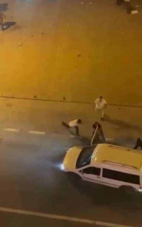 Bursa’da iddiaya göre araçta son ses müzik dinleyen gençler ile mahalle sakinleri arasında sözlü tartışma yerini kavgaya bıraktı. Tarafların birbirlerine tekme tokat girdiği, sopaların havada uçuştuğu kavga kameraya yansırken, araç sürücüsü genç önce kaçmaya ardından kavga ettiği kişileri araçla ezmeye kalktı.