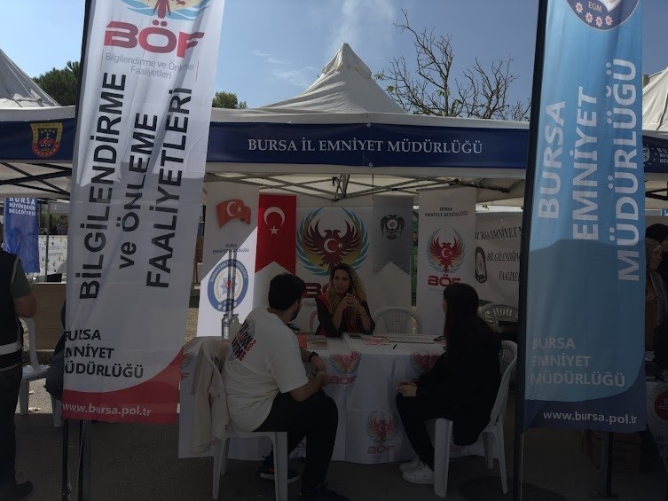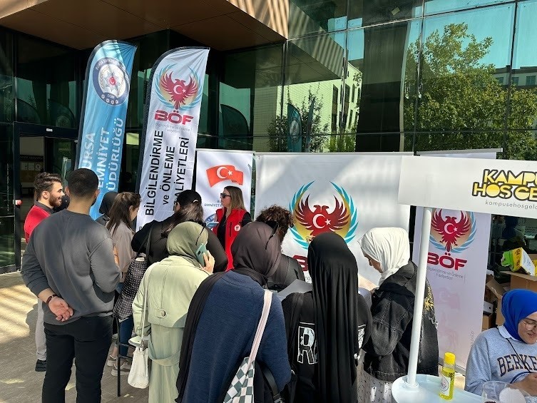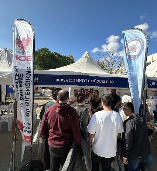 Bursa Emniyet Müdürlüğü Terörle Mücadele Şube Müdürlüğü, ’bilgilendirme ve önleme faaliyetleri’ dahilinde “El Ele Güvenli Geleceğe” projesiyle üniversite kampüslerinde, öğrencileri propagandalara karşı bilinçlendirmek için stant kurdu.