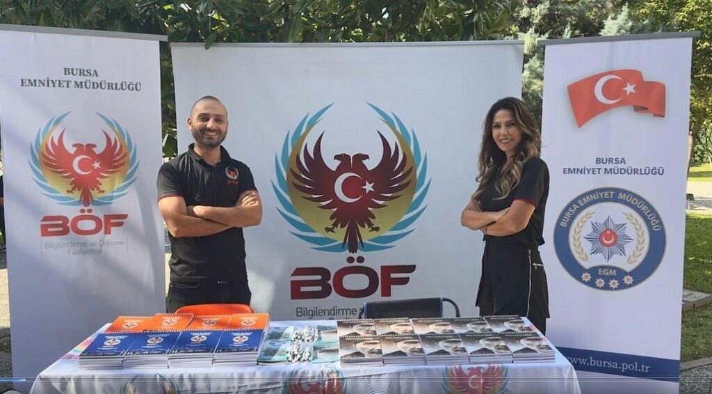 Bursa İl Emniyet Müdürlüğü, Terörle Mücadele Şube Müdürlüğü görevlilerince, Bilgilendirme ve Önleme Faaliyetleri (BÖF) kapsamında “El Ele Güvenli Geleceğe“ isimli Bilgilendirme Stantları ile 2024-2025 Eğitim-Öğretim döneminde Bursa’da Üniversitelere kayıt yaptıran ve halen öğrenim görmeye devam eden öğrencilere yönelik çalışma başlattı. Ekipler, öğrencilerin, eğitim ve öğretim hizmetlerinin huzurlu ve güvenli bir ortamda gerçekleşmesi, doğru arkadaş seçiminin önemi, gençlerin ve ailelerin yeni bir şehre geldikleri ilk andan itibaren kendilerini güvende hissetmelerini sağlanması, yasadışı faaliyetlere karşı farkındalık oluşturarak, illegal oluşumların propaganda faaliyetleri ve eylemlerine karşı bilinçlendirmek ve teröre karşı ortak tavrın sergilenmesi, öğrencilik hayatı boyunca nelere dikkat etmesi gerektiğini bilen, daha bilinçli ve duyarlı bireyler olmaları yönünde üniversite kampüslerinde bilgilendirme stantları kurup eğitim verdi.