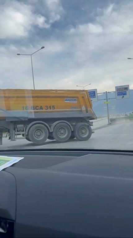 Yol ayrımından girmek için hareket eden otomobil ise, karşısında gördüğü kamyonu görünce neye uğradığını şaşırdı. Ters yönden gelen 16 BBJ 665 plakalı kamyon, herkesin canını hiçe sayması, 10 dakika veya 10 kilometre kaybetmek istememek için ’pes’ dedirten hareketi, saniye saniye cep telefonu kamerasına yansıdı.