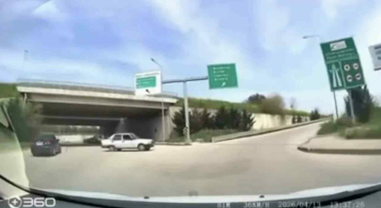 Bursa Şehir Hastanesi Otoban Bağlantı Kavşağı’nda seyir halinde olan bir sürücünün karşısına, ters yönden gelen başka bir araç çıktı. Bursa-Ankara otobanı istikametine geçiş yapmak isteyen sürücünün tehlikeli manevrası, trafikte paniğe neden oldu.