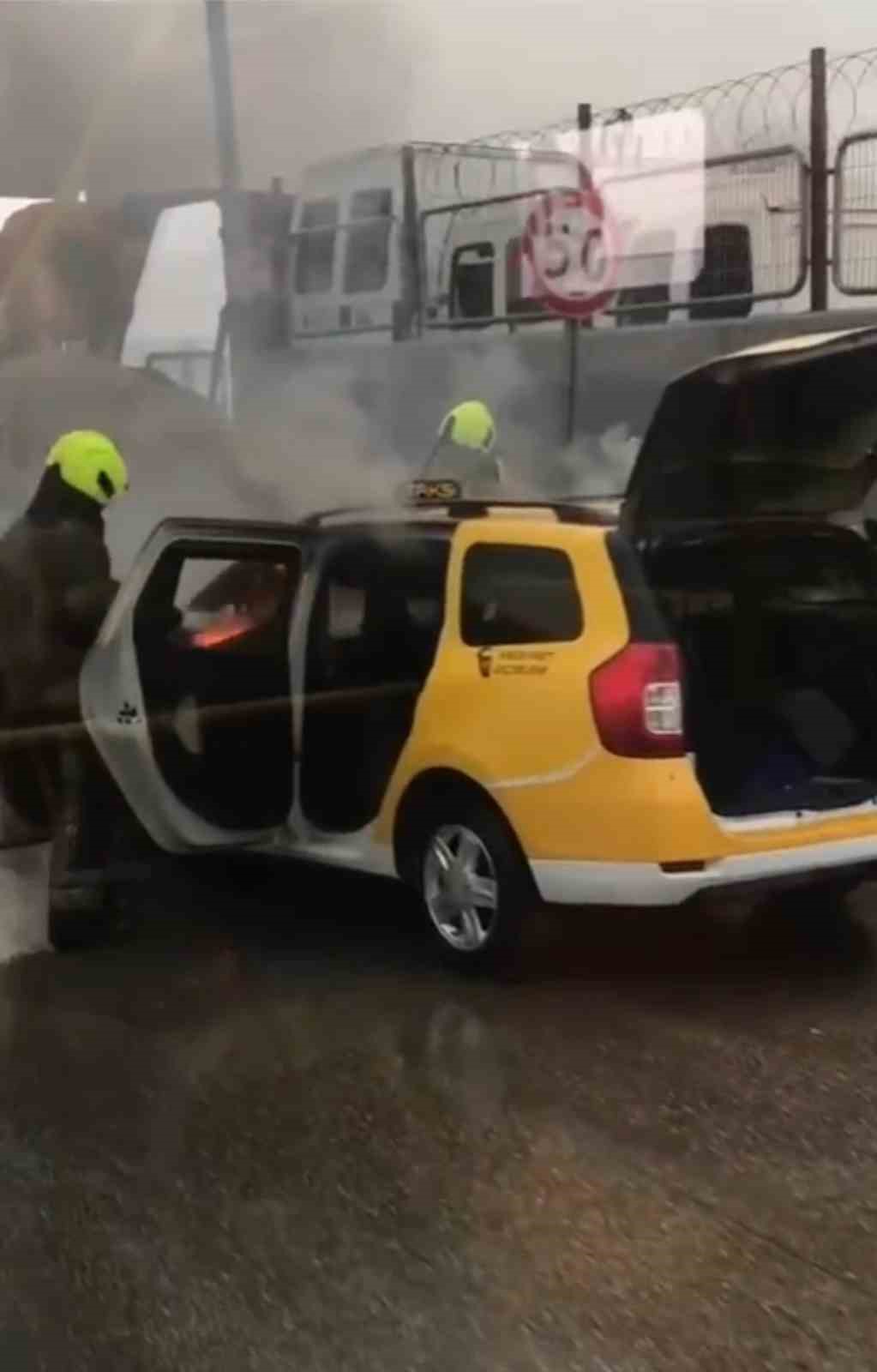 Bursa’da seyir halindeki ticari taksi, motor kısmından alev alması sonucu büyük hasar gördü.