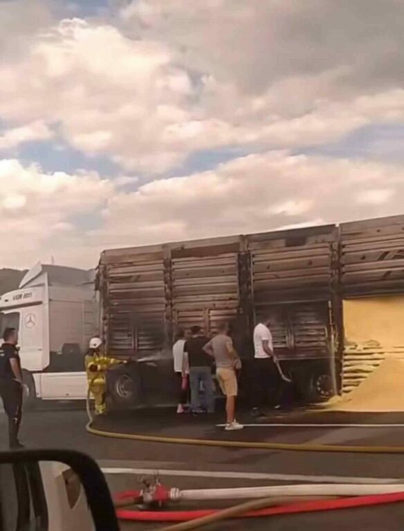 Bursa’da seyir halindeyken alev alan tır, itfaiye ekiplerince söndürüldü.
