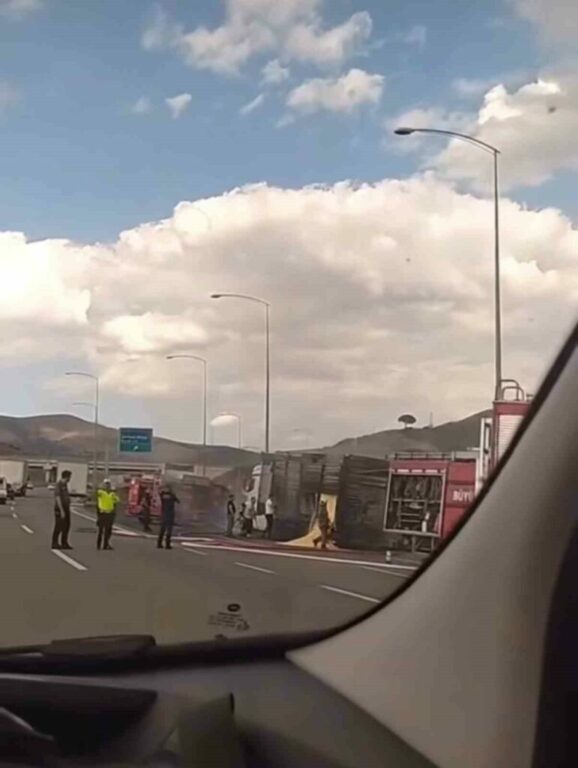 Bursa’da seyir halindeyken alev alan tır, itfaiye ekiplerince söndürüldü.