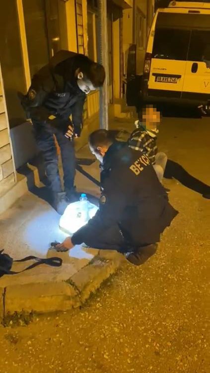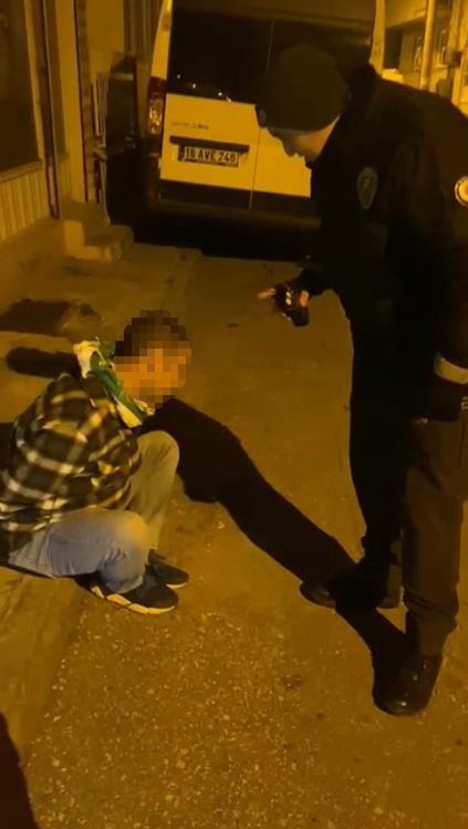 Bursa’da devriye atan gece bekçileri, şüphe üzerine durdurdukları şahsa arama yaptı.