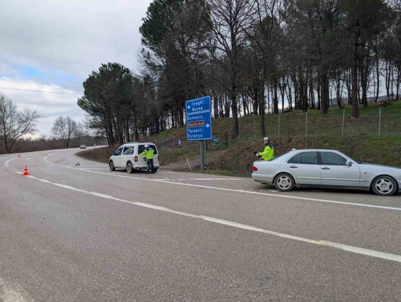 Kaza, İnegöl-Domaniç karayolu Gündüzlü Mahallesi girişinde meydana geldi. Burak S. yönetimindeki 16 ASU 493 plakalı hafif ticari araç ile Hamza S. yönetimindeki 16 BPB 290 plakalı otomobil çarpıştı. Çarpışmanın etkisiyle araçlar savruldu.