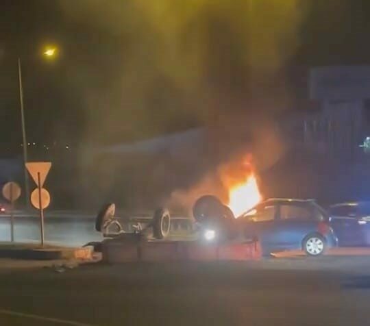 Kaza ve yangın sonucu otomobil kullanılamaz hale geldi.