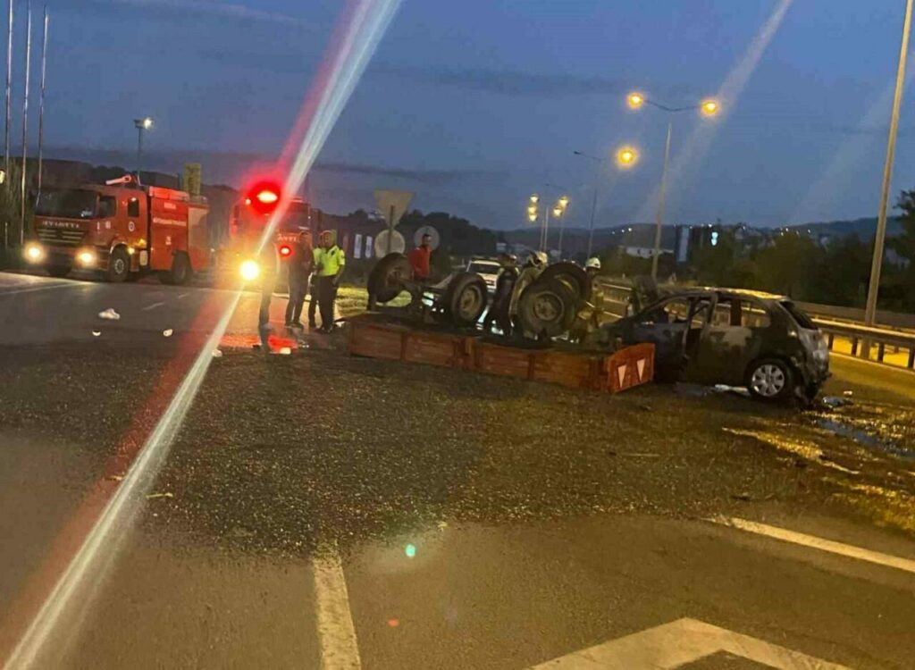Bursa’da traktöre çarpıp yanan otomobildeki anne-kız yaralandı