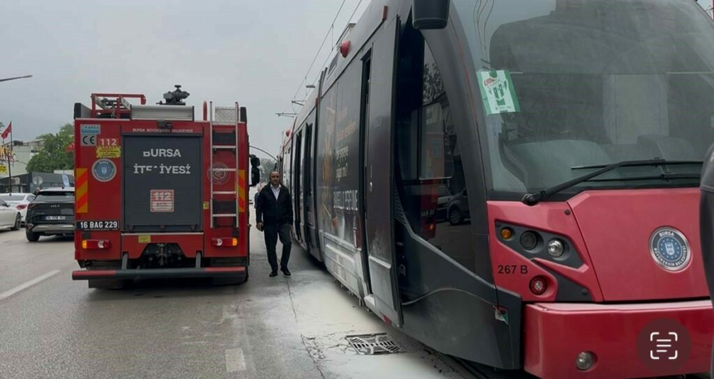 Bursa’da seyir halindeki tramvayda çıkan yangın korku dolu anlar yaşandı.