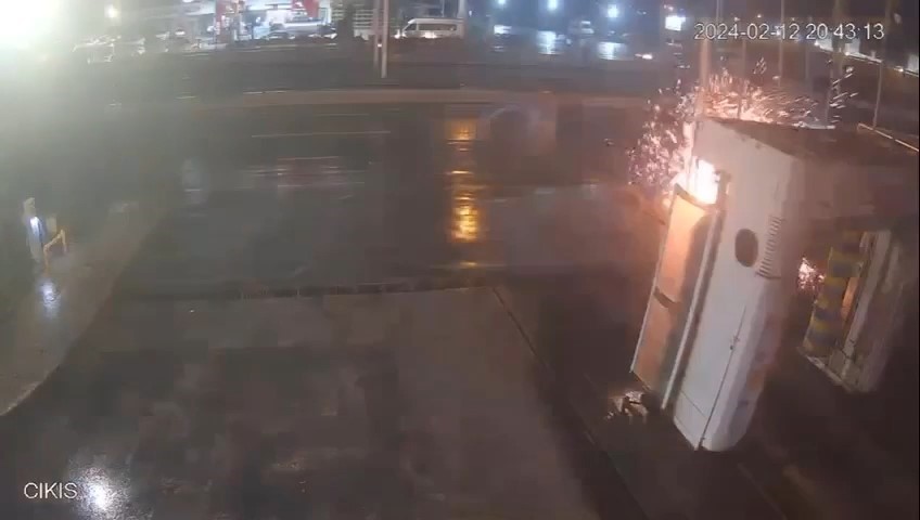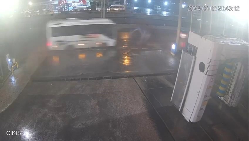 Polis ekipleri kazayla ilgili tahkikat başlatırken, kaza anı ise güvenlik kamerasına anbean yansıdı.