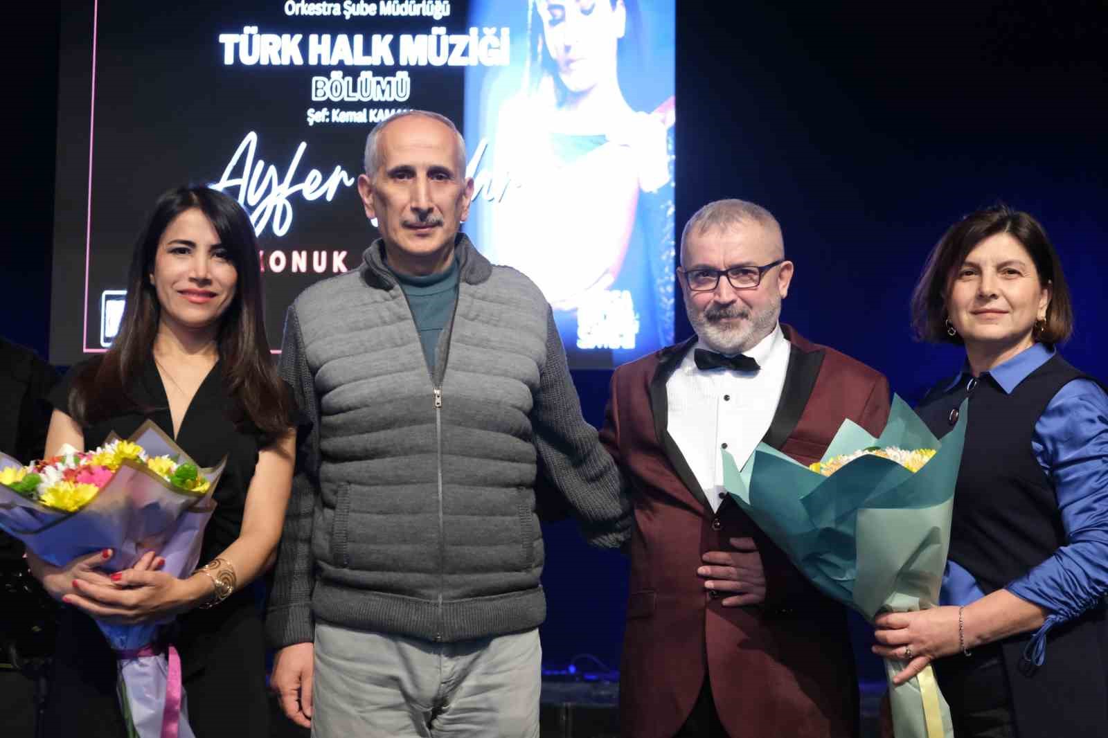 Türk Halk Müziğinin sevilen isimlerinden Ayfer Vardar, Bursalı türkü severlere eşsiz bir müzik yolculuğu yaşattı. Türk Halk Müziği bölümü sanatçılarının ve ses sanatçısı Ayfer Vardar’ın farklı yörelere ait seslendirdiği türküler salonu dolduran izleyicilerden büyük alkış aldı. Konser sonunda Şef Kemal Kamalı ve sanatçı Ayfer Vardar’a çiçek takdim edildi.