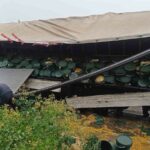Bursa’da turşu yüklü tır, sürücüsünün kontrolünden çıkarak devrildi.