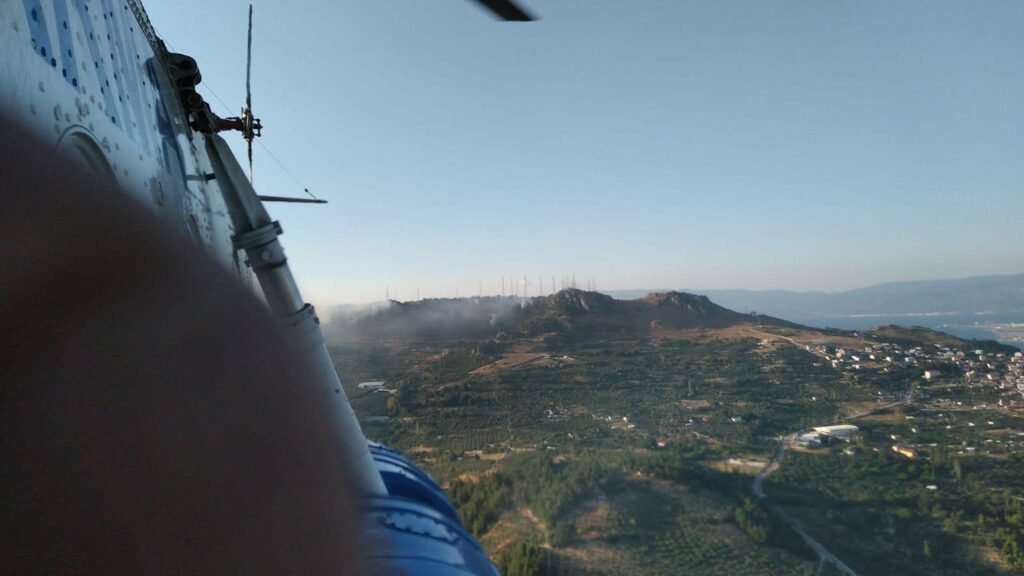 15 hektarlık alanı küle döndüren yangının ardından bölgede yeniden ağaçlandırma çalışması için ilk adımlar da atıldı. Helikopterle havadan kaydedilen görüntülerde geriye griye dönen ormanlık alan görüntüsü kaldı.
