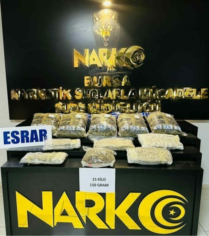 Bursa’da uyuşturucu operasyonu : 15 kilo esrar ele geçirildi