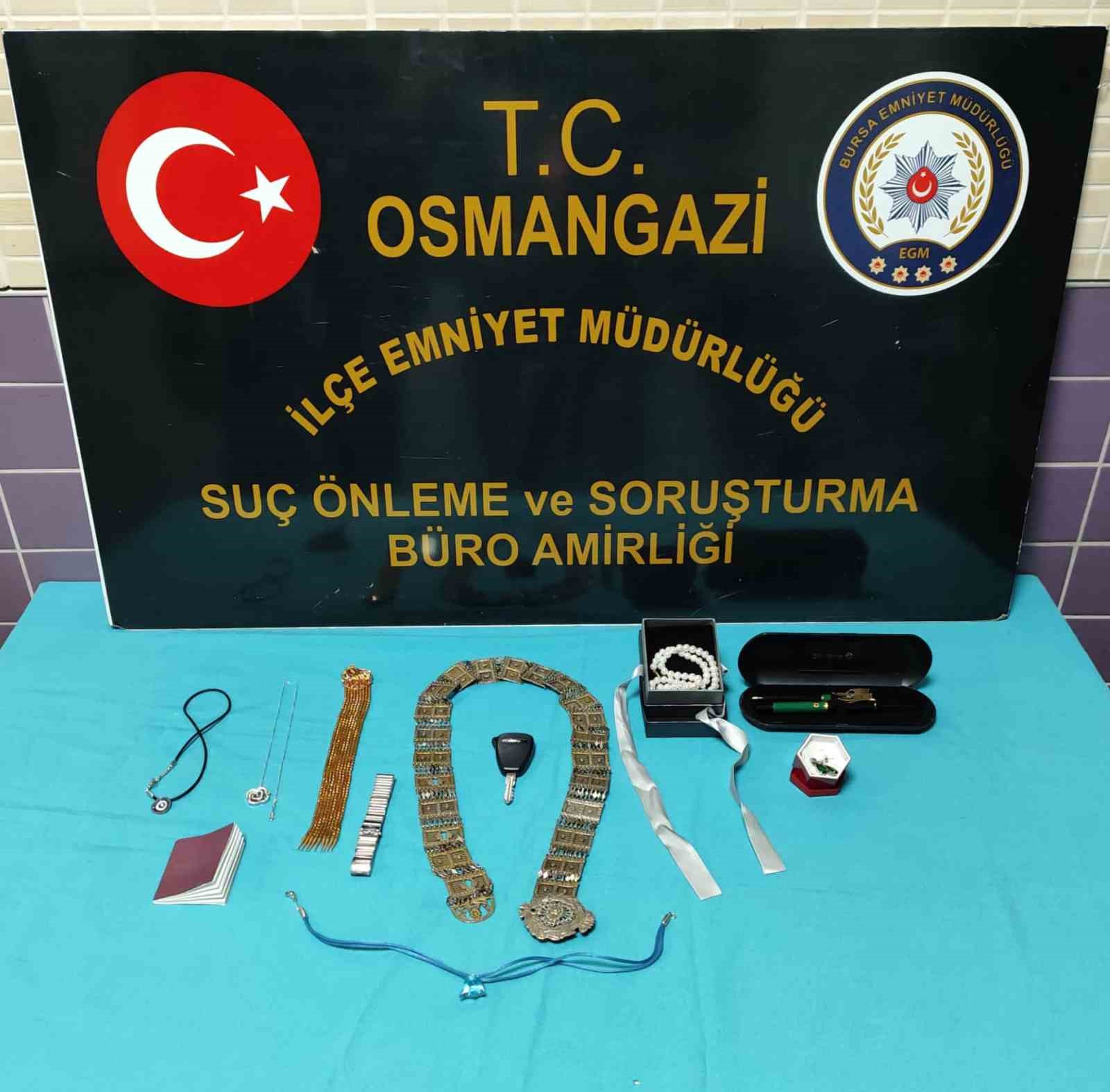 Edinilen bilgiye göre, geçtiğimiz hafta salı sabahı saat 07.00 sıralarında merkez Osmangazi ilçesi İnkaya Mahallesi’nde bulunan bir villaya giren şahıs, giysi dolabındaki dijital çelik kasanın içindeki 5 milyon liralık mücevheratı çaldı. Olayın ihbar edilmesiyle birlikte harekete geçen Osmangazi Suç Önleme ve Soruşturma Büro Amirliği ekipleri hızlı bir şekilde inceleme başlatarak olayı çözdü.