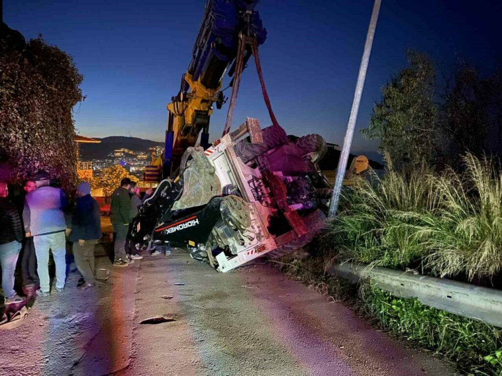 Bursa’da vinçten düşen iş makinesi paniğe neden oldu
