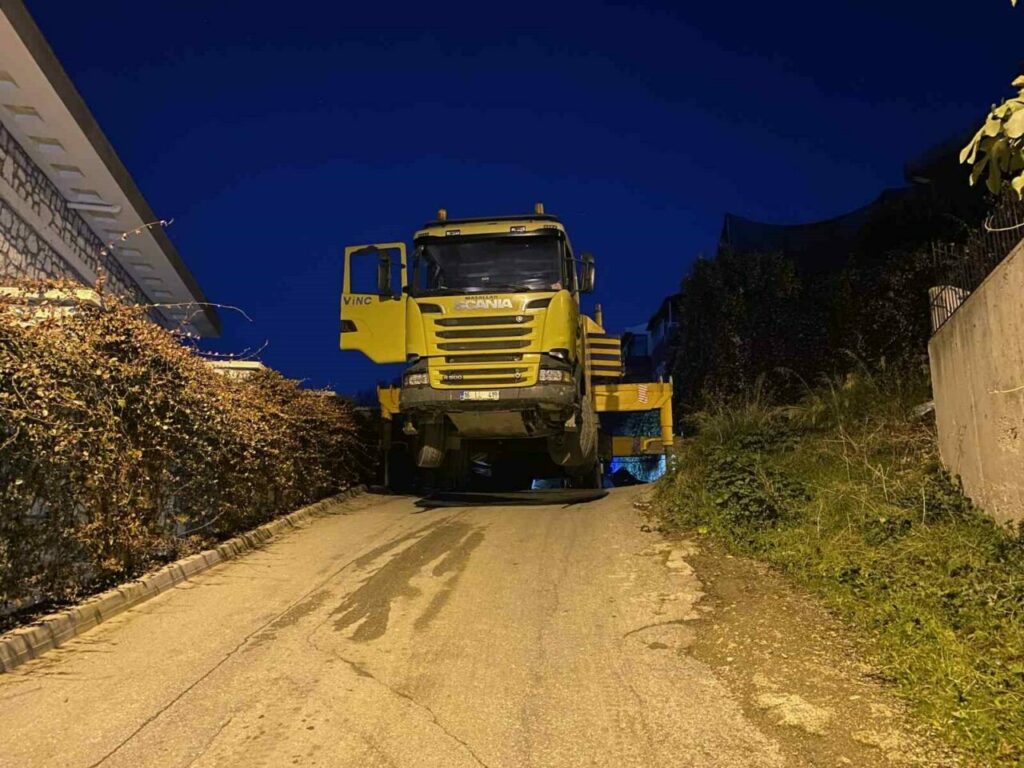 Güzelyalı Burgaz Mahallesi Ferah Sokak üzerinde meydana gelen olayda, bir evde yürütülen çalışmalar sırasında vinçteki kepçe devrildi.