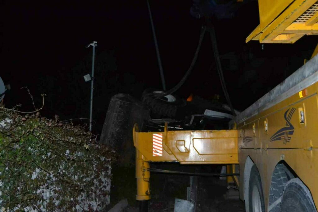 Bursa’nın Mudanya ilçesinde vinçten düşen iş makinesinde maddi hasar meydana geldi. Bölgede kısa süreli panik yaşandı. Olayda şans eseri yaralanan olmadı.