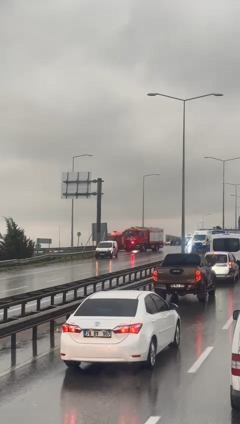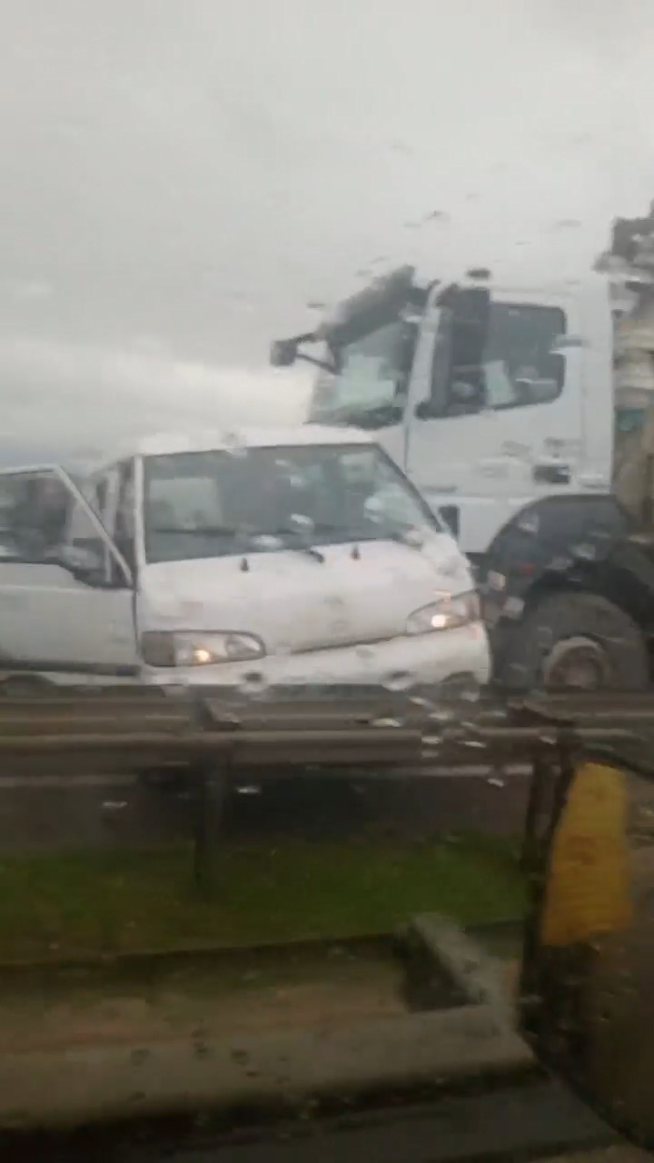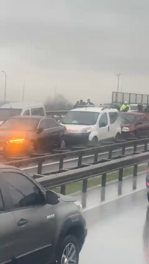 Bursa’da seyir halindeki kamyon yağışlı havanın etkisiyle duramadı. Önündeki araçları sürükleyen kamyon 8 aracın hasar almasına sebep olurken, kazada 4 kişi hafif yaralandı.