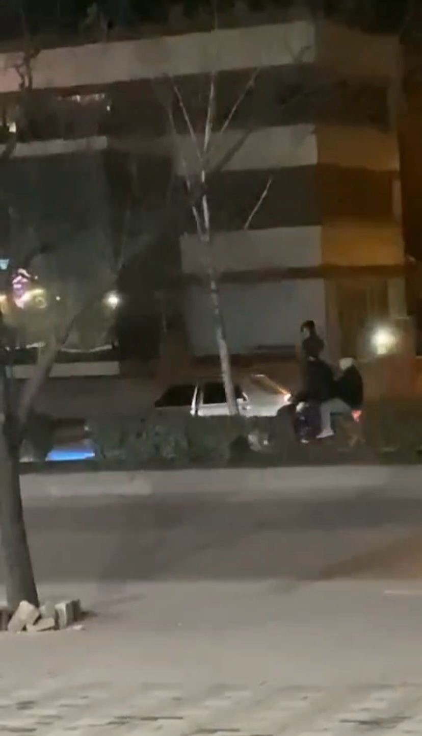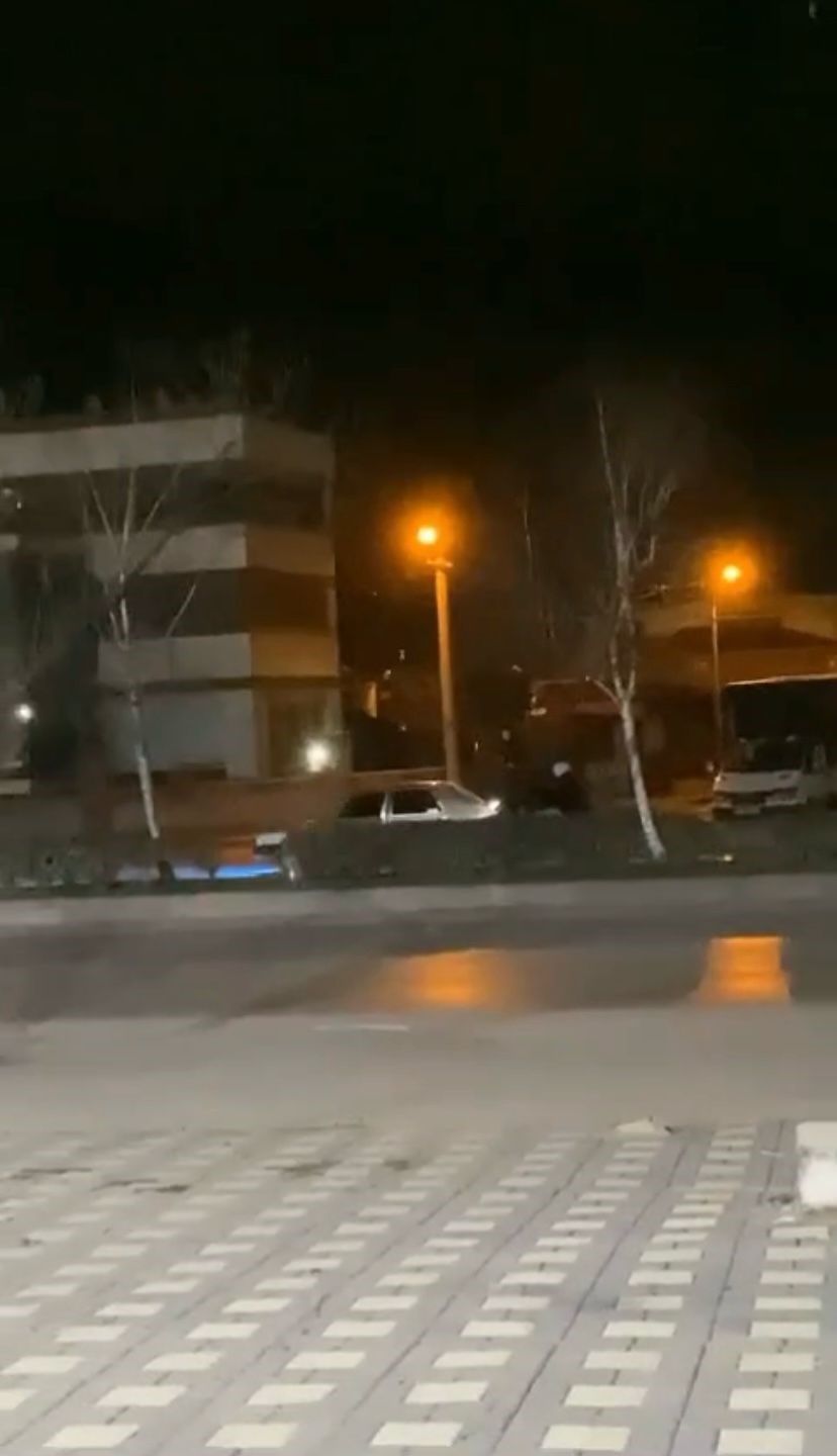 Henüz sürücüsü ve plakası belirlenemeyen otomobilin yakıtı bitti. Sürücü, arkadaşlarını arayarak yardım istedi. Motosikletle gelen 2 şahıs, aracı motosikletle itmeye başladı.