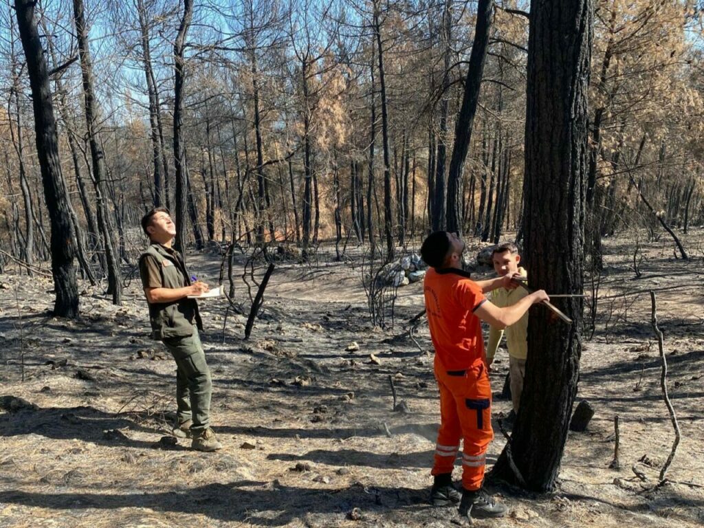 Bursa’nın Orhaneli ve Harmancık ilçelerinde yangın sonucu küle dönen yüzlerce hektarlık ormanlık alanda, Bursa Orman Bölge Müdürlüğü ekipleri tarafından hem havadan hem karadan sayım işlemi yapılıyor. Orman uzmanları, yanan ağaçları ve kurtarılabilecek bir filize kadar ormandaki bütün bölgeyi santim santim saydı.