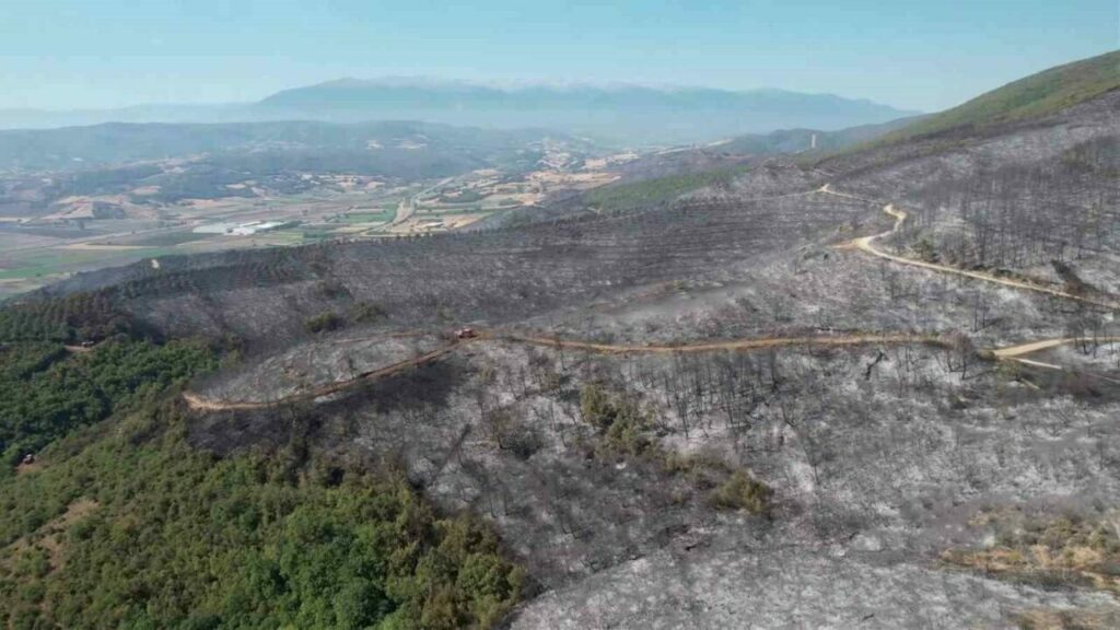 Bursa’nın Yenişehir ilçesi Fethiye Mahallesi’nde dün çıkan orman yangını, ekiplerin havadan ve karadan verdiği yoğun mücadelenin ardından söndürüldü. Acı tablonun bilançosu havanın aydınlanmasıyla ortaya çıktı. Yürek burkan grilik havadan görüntülendi.